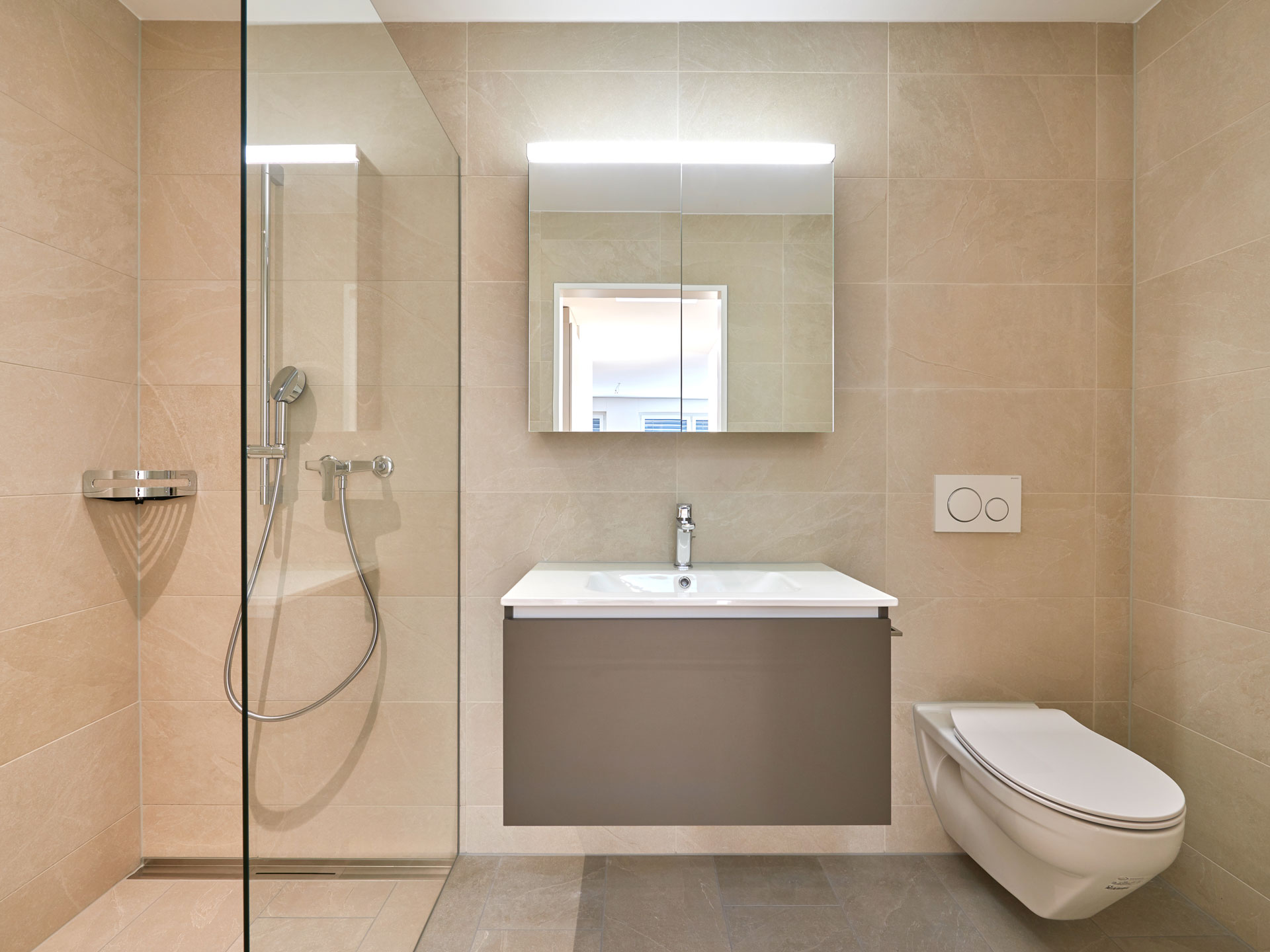 Acht Mietwohnungen mit Sitzplätzen und Balkonen auf der Südseite und mit einem nachhaltigen Energiekonzept. Dank der sehr guten Wärmedämmung des isolierten Einsteinmauerwerks, der kontrollierten Wohnungslüftung und einer Photovoltaikanlage erfüllen die Wohnungen den Minergie-P Standard.