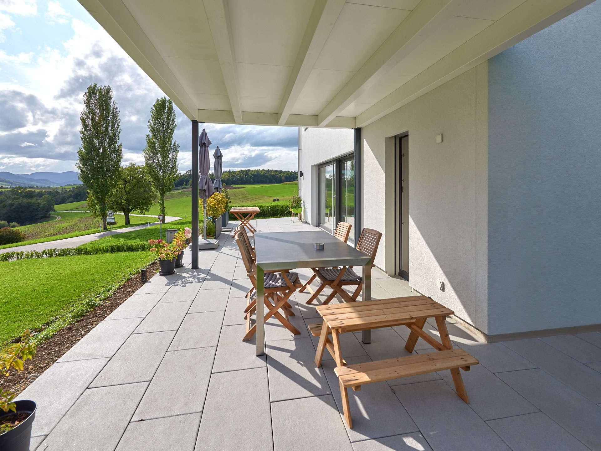 Die Bauherrschaft war bei diesem Projekt im basellandschaftlichen Rünenberg im Besitz einer recht grossen Parzelle, die eine leichte Hanglage aufwies. Der Bau musste besonders sorgfältig gestaltet werden, um dieses Terrain möglichst wenig zu verändern. Besonderen Wert legte der Bauherr zudem auf Massivbauweise mit 2-Schalen-Mauerwerk.